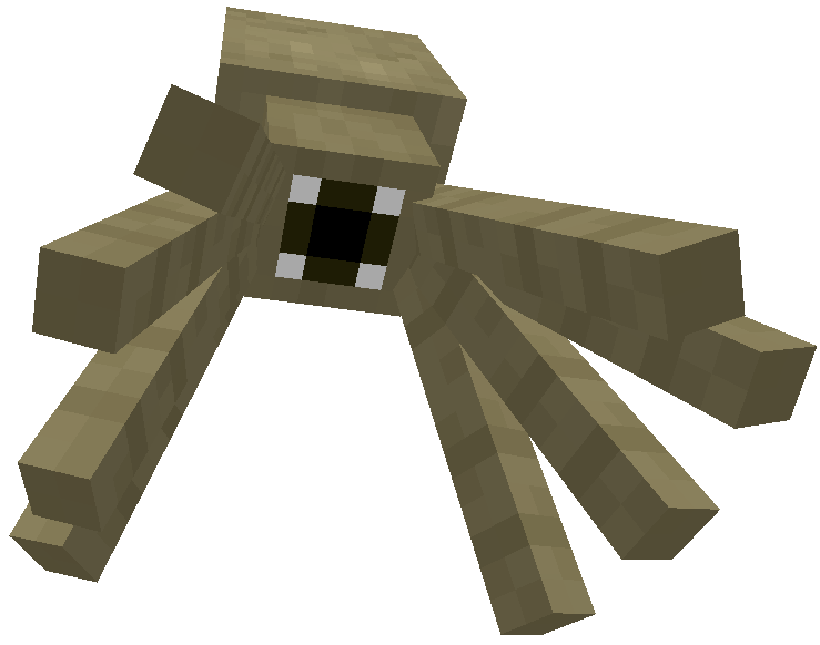 The mob is a sandy tan color, with a single bulbous body similar to a spider's abdomen, and a square head which lacks any visible eyes but has a gaping circular maw to bite at the player with. It has 8 legs, all situated at the front of its body to borrow and lunge out at potential prey with.